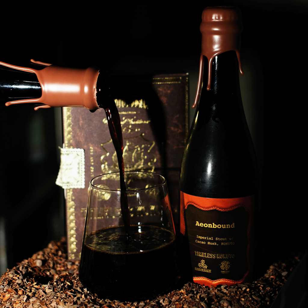 ベースとなるビールは、複数種類のモルトを使用し、長時間じっくりと煮沸することでアルコール度数を高め、芯のある重厚なボディに仕上げています。そこに、チョコレートの製造工程で発生するカカオハスクと、同店が新たに展開する黒糖「TIMELESS KOKUTO」を加えました。
